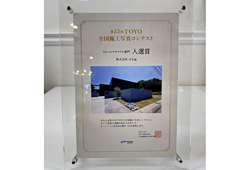 東洋工業(株)「第33回TOYO全国施工写真コンテスト」ウォールマテリアル部門 入選賞